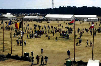 | Et kig på vores lejr fra indgangen. Ialt havde vi en lille "landsby" bestående af 5 grupper. 3 svenske, 1 engelsk og os fra Danmark. Vores adresse var Prati 148.