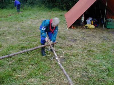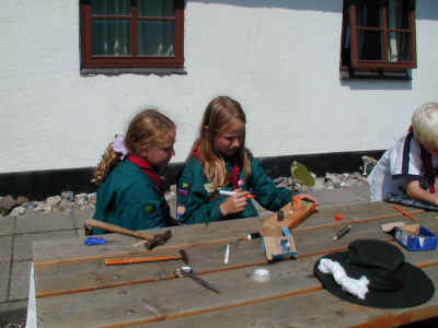 Blandt juniorspejderne foregår der også en masse. Her er de lige begyndt på noget storpionering....