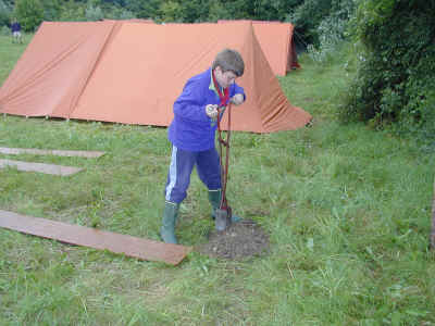 Vel ankommen til "Farmen". Nu skal lejren opbygges og her gælder det juniorspejdernes og spejdernes telte. Spejderpatruljen er yderst til højre.
