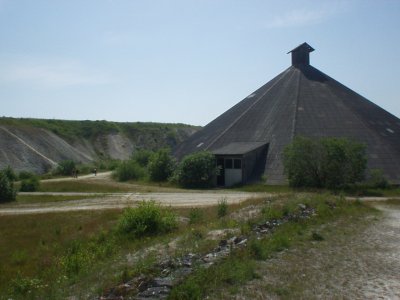 Undervejs på hiken kom spejderne forbi Boesdal Kalkbruds pyramide til opbevaring af jordbrugskalk.